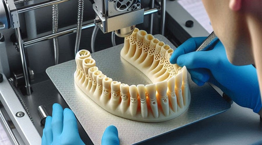 یکی از هیجان انگیز ترین مسیرها در آینده پرینترهای سهبعدی، پرینت استخوان فک با سلولهای بنیادی یا مواد زیست فعال، بازسازی بافت لثه یا پریودنشیم و حتی پرینت دندان زنده است که در سطح تحقیقاتی شروع شده و در آیندهای نه چندان دور در حوزه کلینیکی نیز وارد خواهد شد.